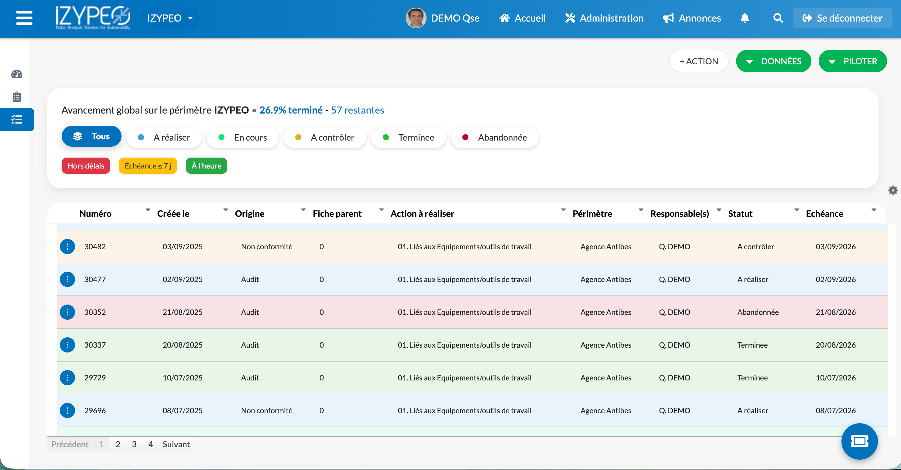 Digitalisez votre management de la qualité avec la solution logicielle d’Izypeo et pilotez audits, non-conformités, plan d’action, fournisseurs et satisfaction client via une plateforme SaaS mobile conforme à la norme ISO 9001. Demandez une démo.